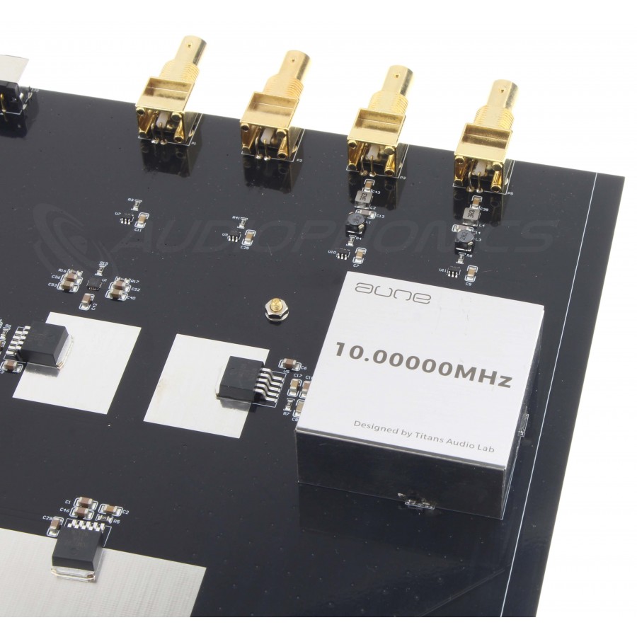 The Aune SC1 EVO was designed precisely with this objective in mind, but it achieves it through an approach that goes beyond mere digital engineering. At the heart of the system lies an OCXO oscillator – a temperature-controlled quartz crystal – designed to maintain the highest possible stability over time. This type of technology, typically used in scientific and telecommunications fields, has been adapted here for audio applications, with fine-tuning geared towards sound quality. The result is an extremely stable 10 MHz reference frequency, with an accuracy of around 50 ppb (parts per billion) and a stability of less than 0.01 ppb – figures that place the device in a decidedly high-end category.
