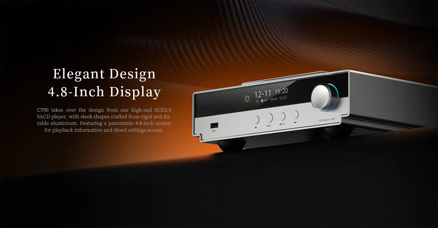 Lo Shanling CT90 è una meccanica di trasporto CD ad alta fedeltà. Si basa su un sistema di riproduzione Sanyo DA11 e un decodificatore SAA7826 per una riproduzione più fedele possibile. Supporta flussi ad alta risoluzione fino a PCM 32bit/768 kHz, DSD512 e MQA-CD con upsampling. Inoltre, è dotato di Bluetooth 5.0 con supporto per codec AAC, SBC, aptX, aptX HD e LDAC ad alta risoluzione.